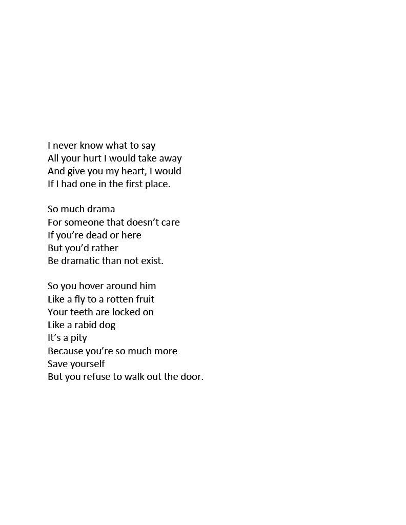 My name is Onaolapo Kaothar Abdulkadir and I’m a Nigerian poet, writer and an overall Netflix potato. People ask me what inspires me to write and usually I say something normal, like books or the weather but the truth is, I inspire myself. My feelings and thoughts are usually haywire and in order not to fall off a metaphorical cliff, I write about it to put myself back in line. I’m usually the character in poems unless I pass by someone interesting in a movie or a book. Oh, I also use writing prompts and random sentences and personalize inanimate objects to get the juices flowing.